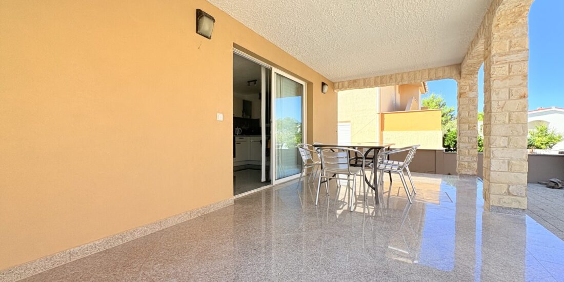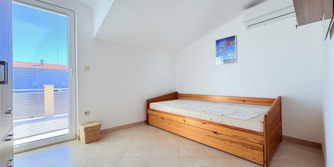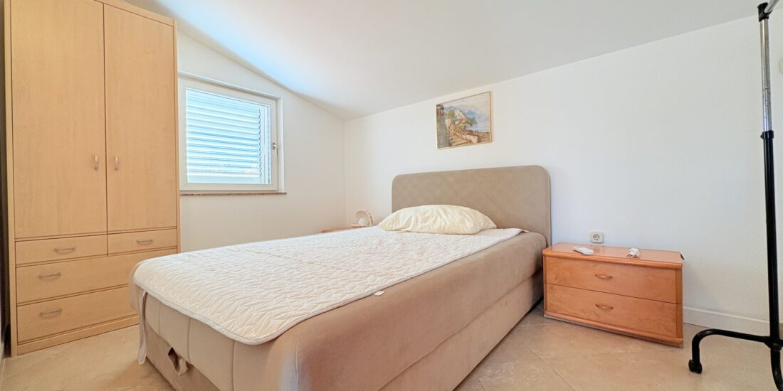 The Wilusa real estate agency offers for sale an exclusive penthouse apartment with a large roof terrace on the island of Vir, located in a modern new building only approximately 300 meters from the sea and beach and 500 meters from the village center.