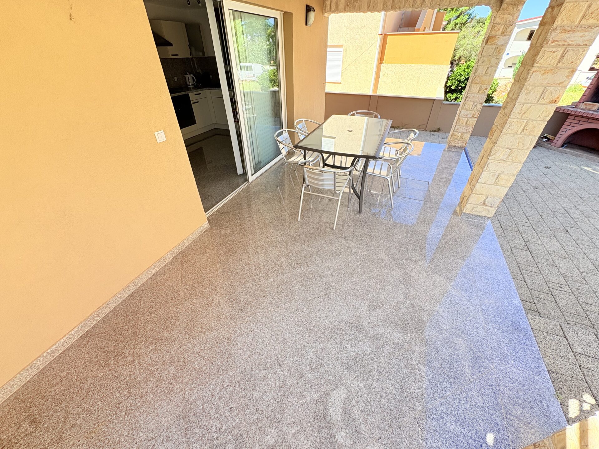 The biggest advantage of this property is the spacious roof terrace with an area of ​​approximately 80 m², which creates an ideal outdoor living space for relaxation, social gatherings or relaxation with maximum privacy. The terrace is covered with travertine stone, which gives the entire space an elegant and modern character. It also includes a covered part prepared for a summer kitchen and installations for a jacuzzi, which allows you to create a luxurious relaxation area with a view of the peaceful surroundings.