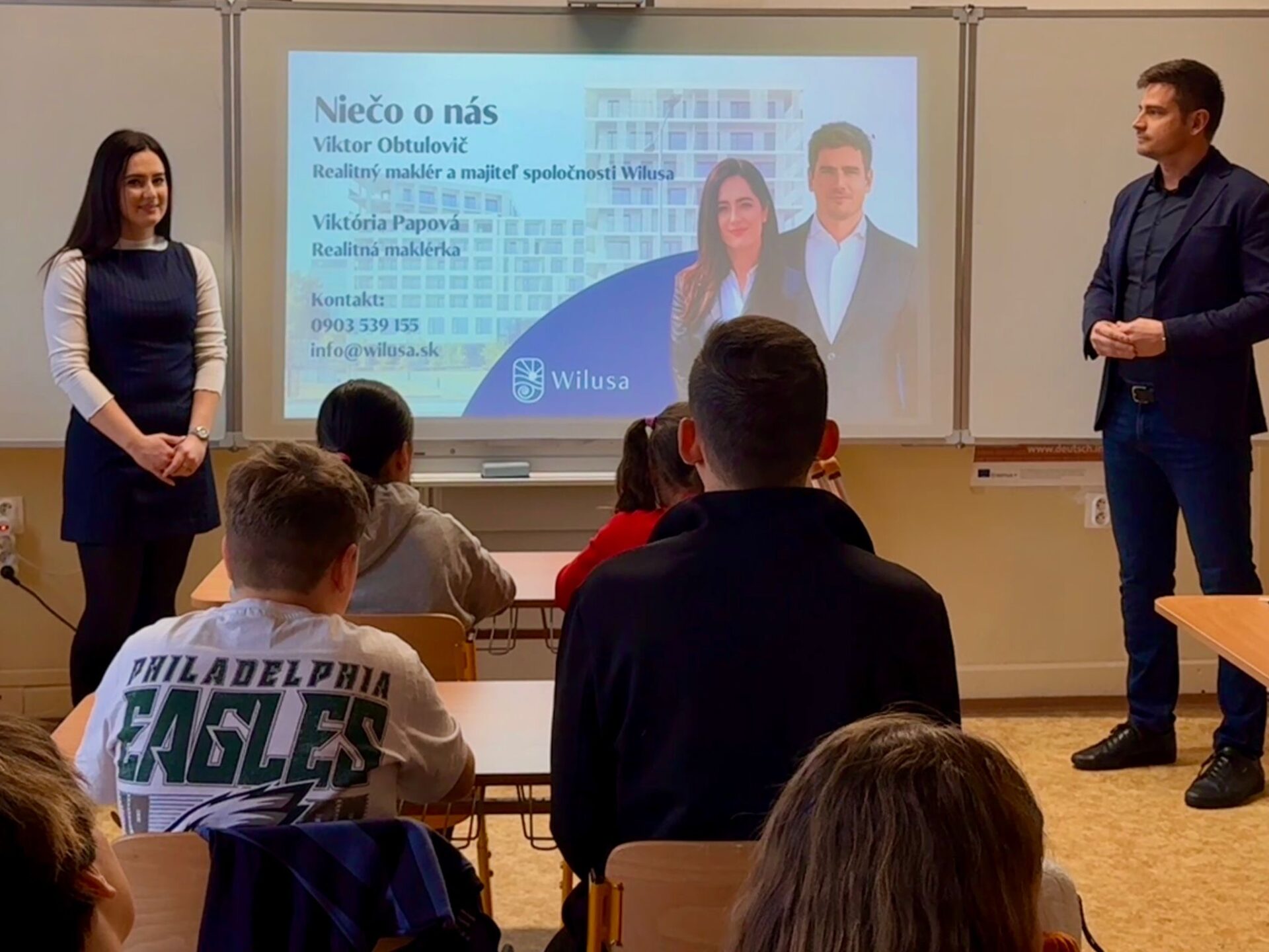 Realitná kancelária Wilusa mala nedávno výnimočnú príležitosť predstaviť svoju prácu tým najmladším. Navštívili sme Základnú školu Hlboká, kde sme pre triedu 5.A pripravili prezentáciu o tom, čo obnáša práca realitného makléra. Pre nás to nebola len obyčajná prednáška. Bola to zodpovednosť.