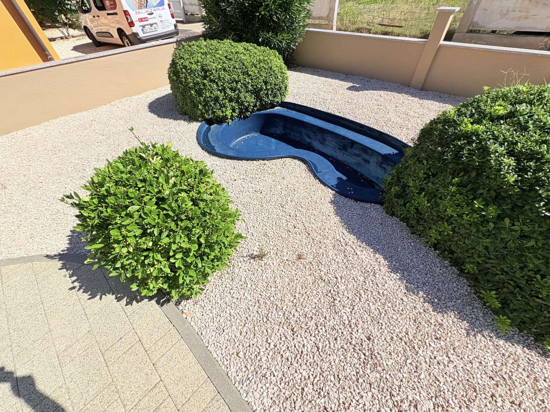 Záhrada je krásne upravená a obklopená zeleňou, s vonkajším grilom, podzemnou cisternou na vodu s objemom 7 m³ a septickou jamou. Pozemok poskytuje možnosť inštalácie bazéna, pre ktorý je pripravená projektová dokumentácia.