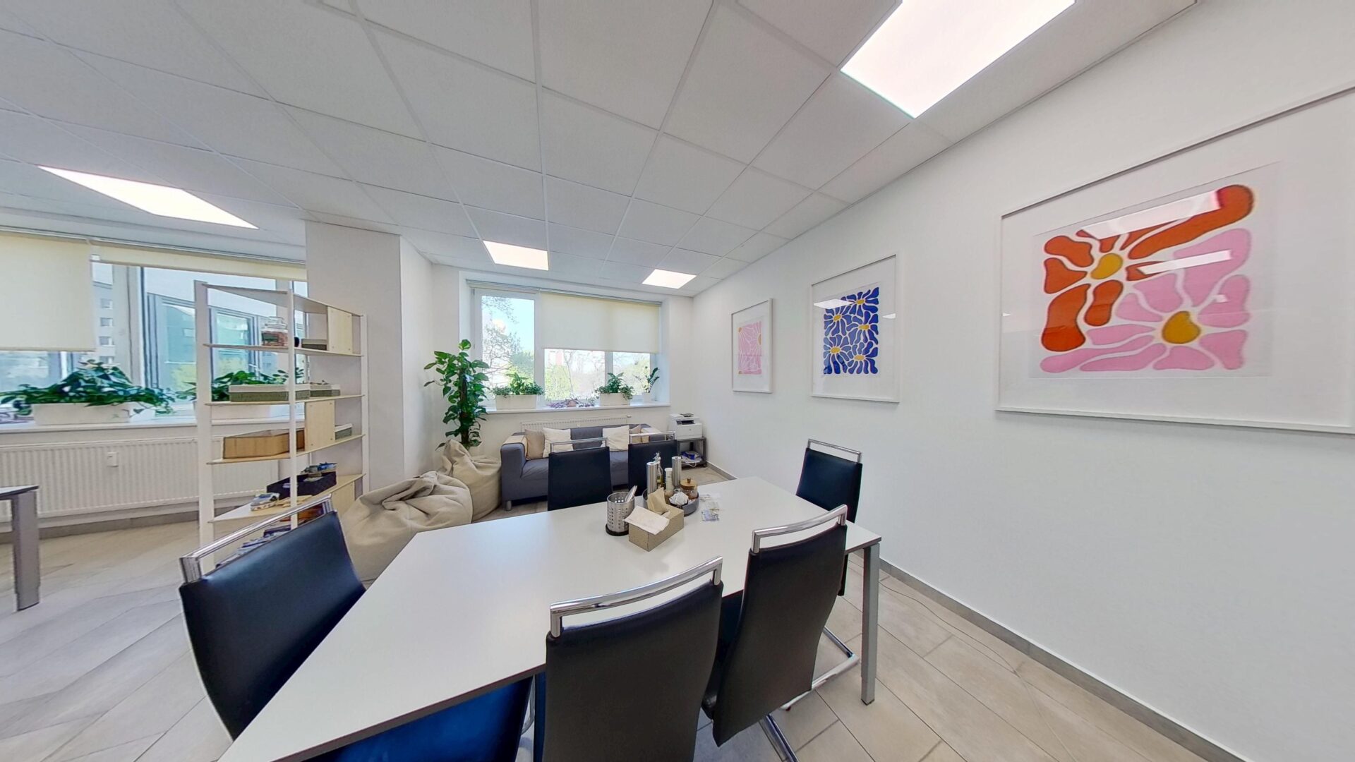Celková výmera priestorov je 301,52 m². Dispozične sú riešené veľmi prakticky – centrálna chodba zabezpečuje vstup do jednotlivých kancelárií. Celok tvorí 8 samostatných kancelárií a priestranná zasadacia miestnosť, ktorú je možné využiť aj ako nadrozmernú kanceláriu. Dispozícia poskytuje flexibilitu pre rôzne typy spoločností a pracovných modelov.