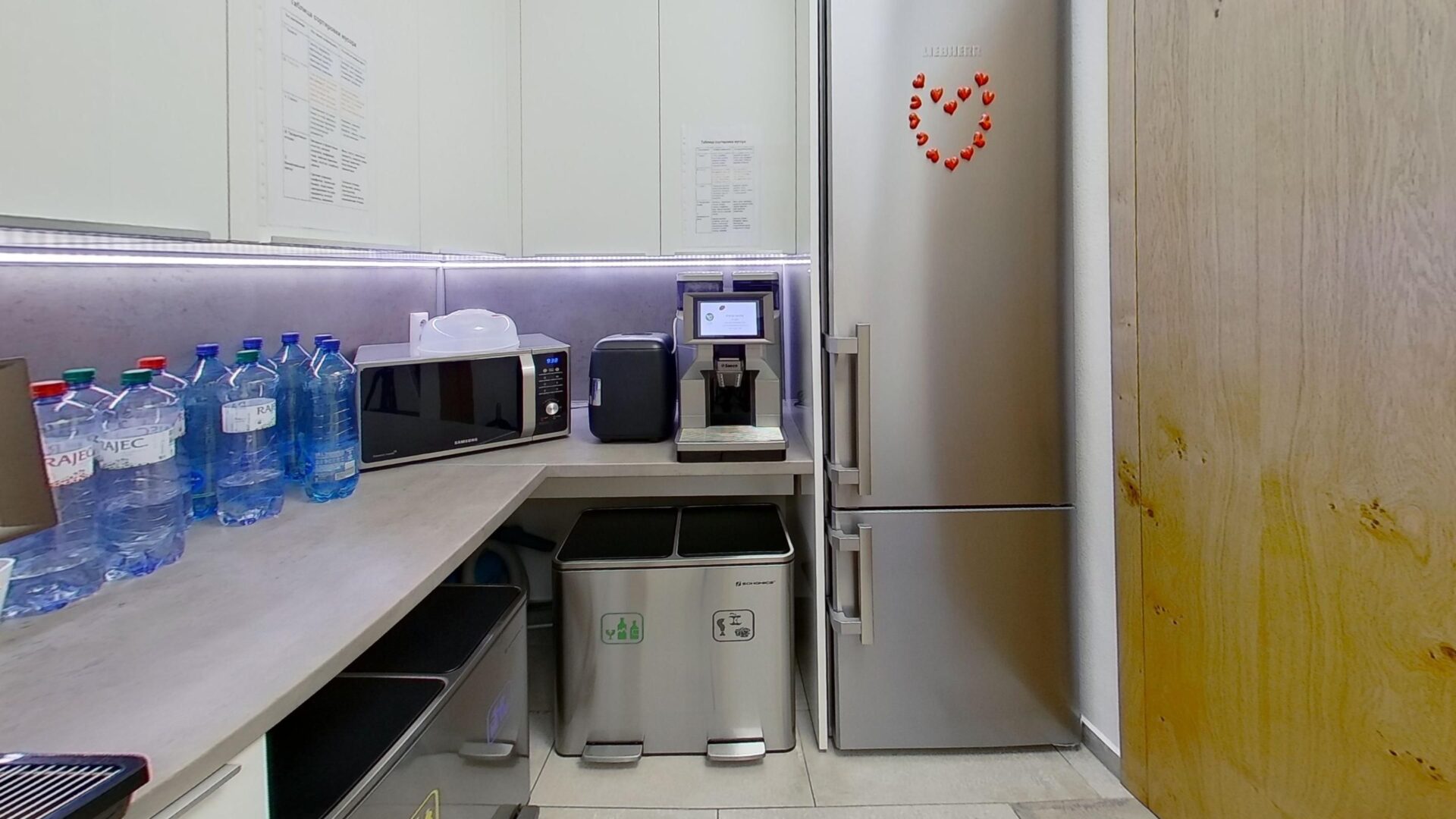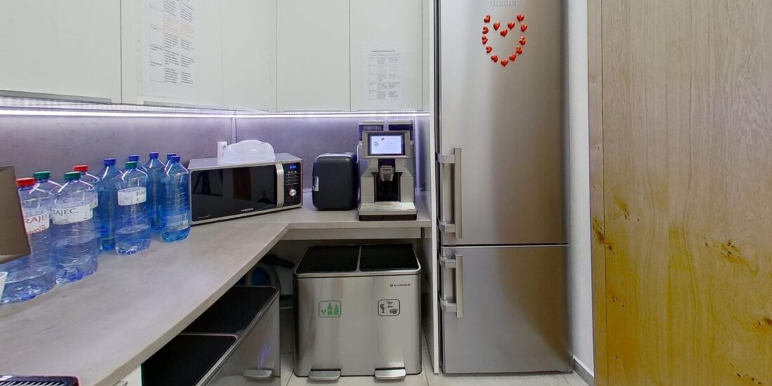 Súčasťou priestorov je serverovňa, kuchynka a dve samostatné sociálne zariadenia (WC) s predsieňou a umývadlom. Kancelárie sú kompletne zariadené novým nábytkom vrátane stolov, skríň, stoličiek a úložných priestorov, čo umožňuje okamžité využitie bez ďalších investícií. Vybrané steny a nábytok dopĺňajú drevené dyhové obklady, ktoré podčiarkujú reprezentatívny charakter priestorov. Samozrejmosťou je klimatizácia.